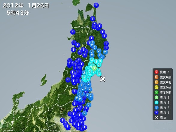 そして26日、早朝、まだ日が上がらない時間にも宮城県沖で震度4の地震があったようです↓